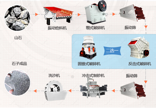 優點:適用于處理中等硬度、脆軟性石料,成品粒形好、粉料少,且前期投資成本相對較少。