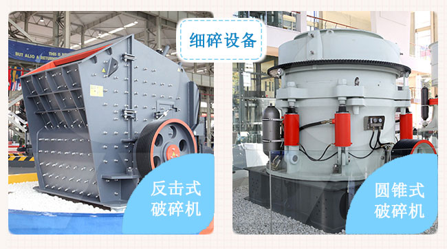 細(xì)碎設(shè)備:反擊破或者圓錐破,反擊破是利用沖擊能破碎物料的設(shè)備,可破碎邊長(zhǎng)不超過500mm、抗壓強(qiáng)度不超過350Mpa的各種礦石和巖石。