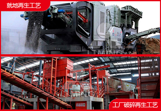 就地再生工藝是采用移動(dòng)式破碎設(shè)備在建筑垃圾現(xiàn)場進(jìn)行處理。這種方式的優(yōu)勢在于各種設(shè)備可以任意移動(dòng)靠近加工點(diǎn),減少運(yùn)輸成本及避免了二次污染;各種移動(dòng)設(shè)備可以根據(jù)需要相互組合,生產(chǎn)各種再生骨料。